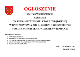 Wójt Gminy Tyrawa Wołoska zaprasza wszystkich zainteresowanych mieszkańców miejscowości Tyrawa Wołoska na spotkanie z wykonawcą budowanej sieci kanalizacji sanitarnej w sprawie informacji o przyłączach sanitarnych do budynków. Spotkanie odbędzie się 14.11.2025...