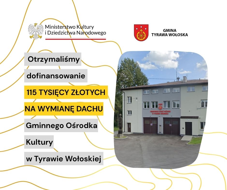 Gmina Tyrawa Wołoska otrzymała wsparcie finansowe w wysokości 115 000,00 zł (80% wartości projektu) w trybie rezerwy ministra na realizację zadania: